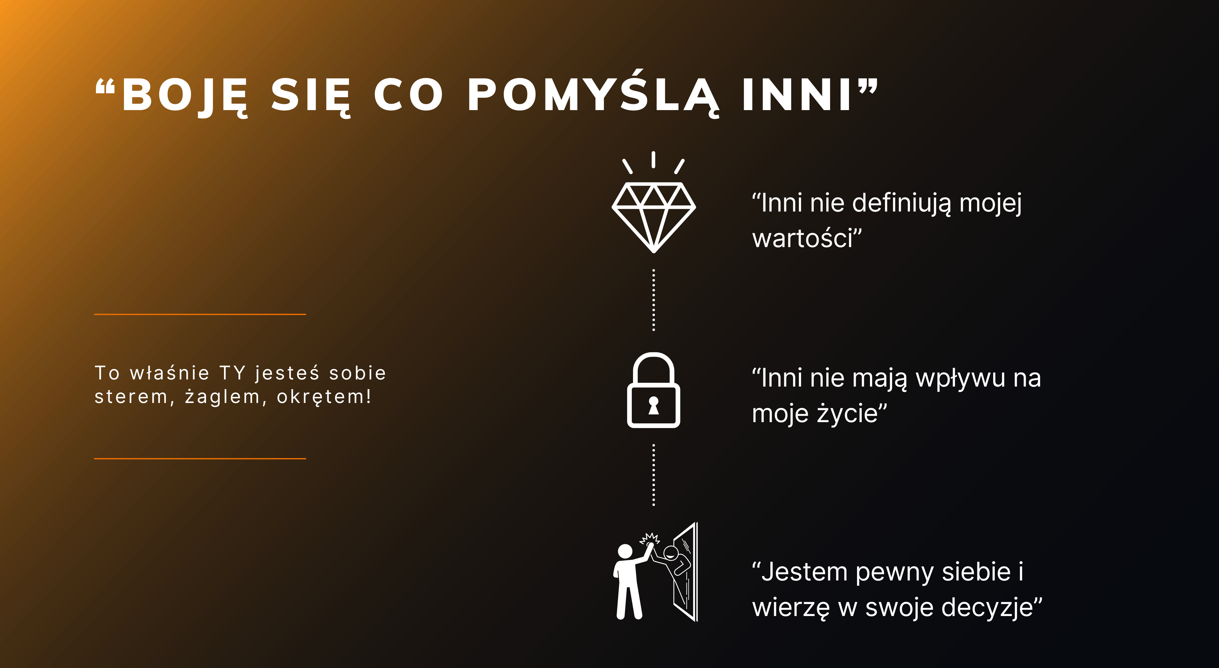 - Dowiesz się, dlaczego czasami brak Ci pewności siebie – skąd biorą się te negatywne myśli, które mówią „nie dasz rady”.